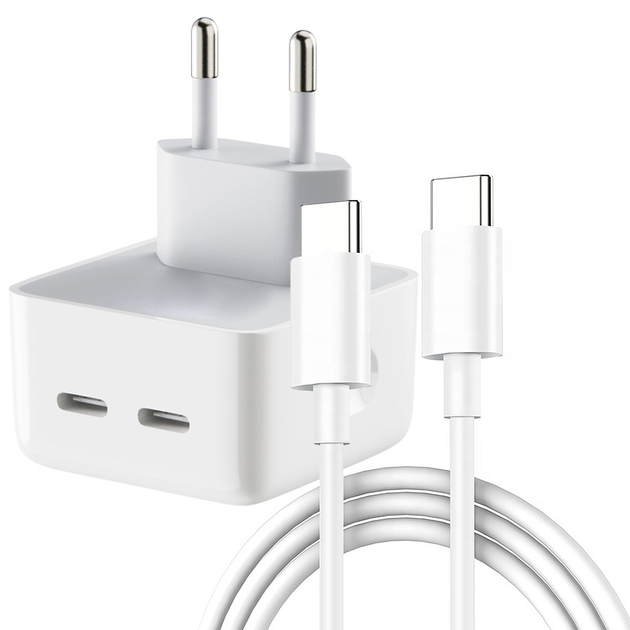 Мережевий зарядний пристрій Foxconn для Apple 35W Dual USB-C Port Power Adapter зі швидкою зарядкою + зарядний кабель для iP