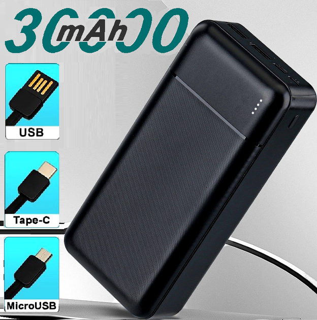 УМБ Павербанк Power Bank 30 000 mAh LED-ліхтар, LCD-дисплей 2xUSB/Type-C/Micro-USB/Lightning повербанк портативна зарядка P3