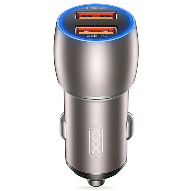 Автомобільний зарядний пристрій XO CC52 QC 3.0 36W/2USB 12/24V швидка зарядка Сірий (240877)