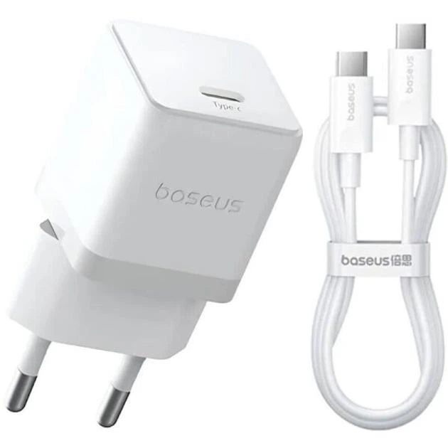 Мережевий зарядний пристрій Baseus Palm Fast Charger Type-C 20W + Cable Type-C to Type-C P10111602213-01 White