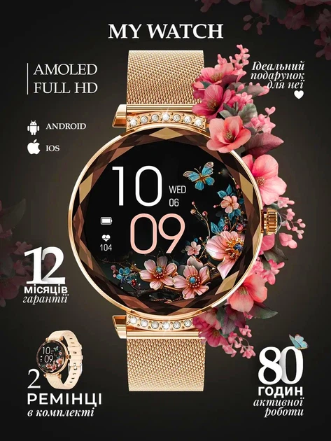 Смарт годинник жіночий GEN 9 Gold другий ремінець у подарунок