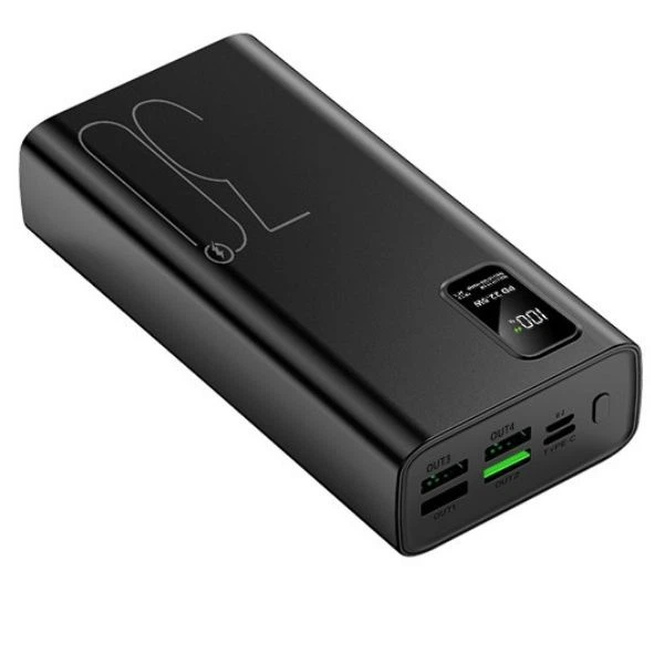 Повербанк LX-A35B 30000 мА·год із швидкою зарядкою 22.5W, дисплеєм та двостороннім Type-C (PD 20W) — 5 портів, чорний