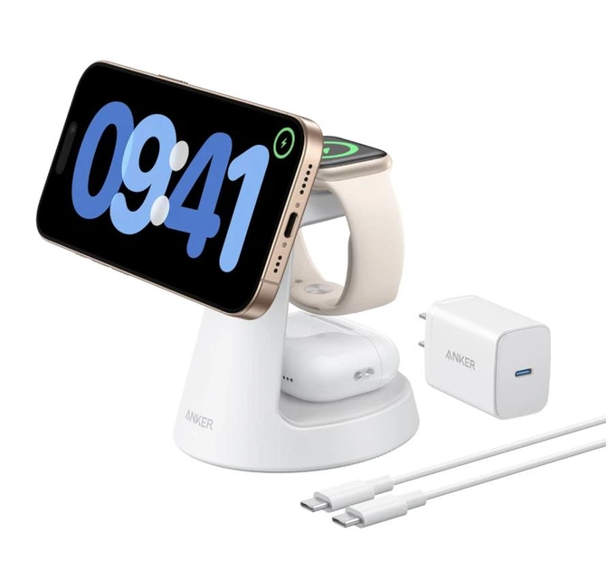 Зарядний пристрій Anker MagGo 3-in-1 Magsafe Charging Station Qi2 15W - White