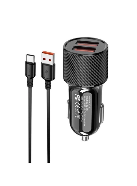 Автомобільний зарядний пристрій прикурювач KAKUSIGA KSC-673 з кабелем Type-C