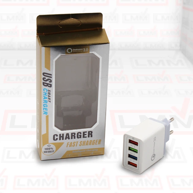 Адаптер на 4 USB з підтримкою QC 3.0 Швидка зарядка D22 7 А універсальний білий