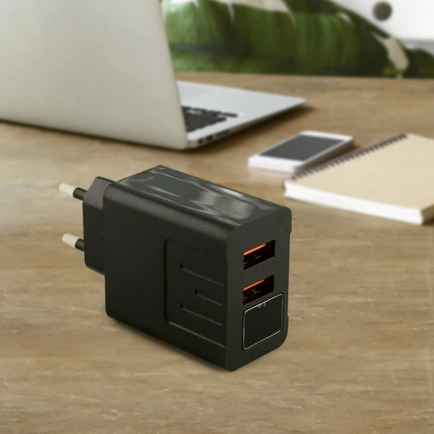 Адаптер на 2 USB з дисплеєм та підтримкою швидкої зарядки CX QC03 чорний 5в 2а
