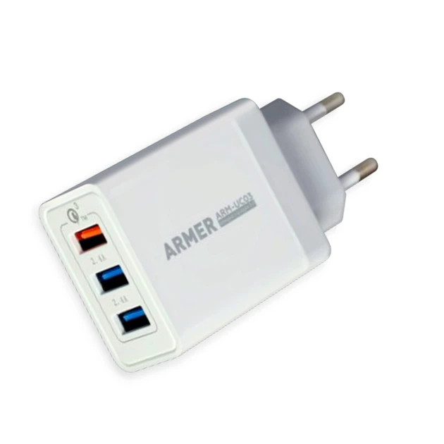 Зарядка від мережі 220В на 3USB 3,0A, QC, біла ARMER