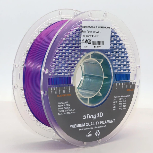 Пластик для 3d друку Sting 3D PLA Silk Tri-color Синій+Зелений+ Пурпуровий 1кг