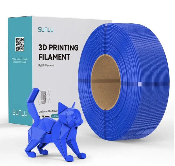 Пластик без котушки SUNLU PETG Klein Blue, Refill, 1.75мм, 1кг, 230-260°C, Синiй філамент для 3Д-друку