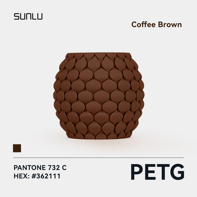 Пластик Sunlu PETG Basic, філамент, ударостійкий для друку 3D 1кг, 1.75мм. З котушкою. Кавовий Коричневий