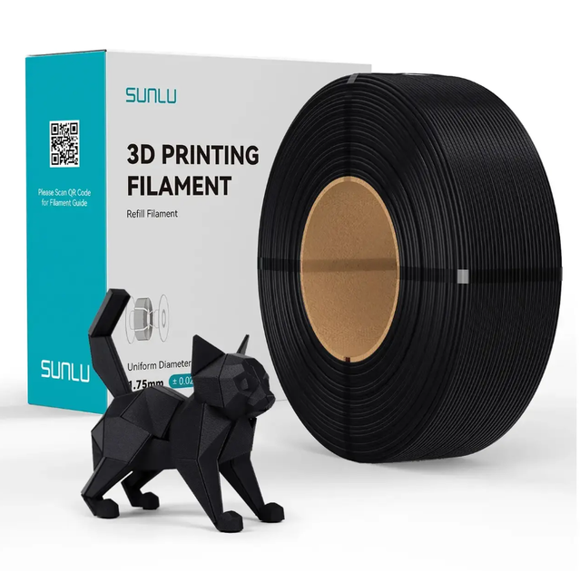 Пластик без котушки SUNLU PETG Black, Refill, 1.75мм, 1кг, 230-260°C, Чорний філамент для 3Д-друку