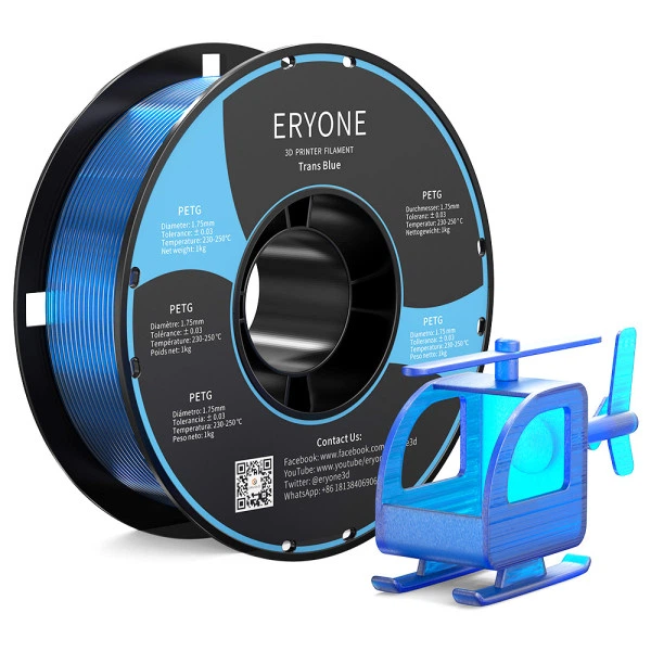 Філамент ERYONE PETG 1 кг - прозоро-блакитний