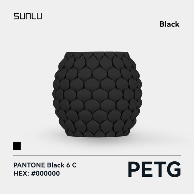 Пластик Sunlu PETG Basic, філамент, ударостійкий для 3D друку 1кг, 1.75мм. З котушкою. Чорний