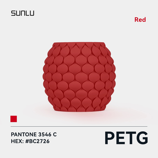 Пластик Sunlu PETG Basic, філамент, ударостійкий для друку 3D 1кг, 1.75мм. З котушкою. Червоний