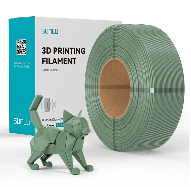 Пластик без котушки SUNLU PETG Army Green, Refill, 1.75мм, 1кг, 230-260°C, Зелений філамент для 3Д-друку