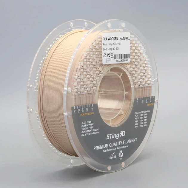 PLA Filament (пластик) для 3D принтера STing3D Wooden 1кг, 1.75мм, Натуральне дерево