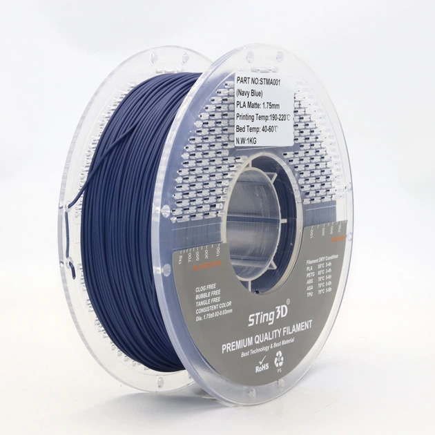 PLA Filament (пластик) для 3D принтера STing3D Matte 1кг, 1.75мм, Темно-синій