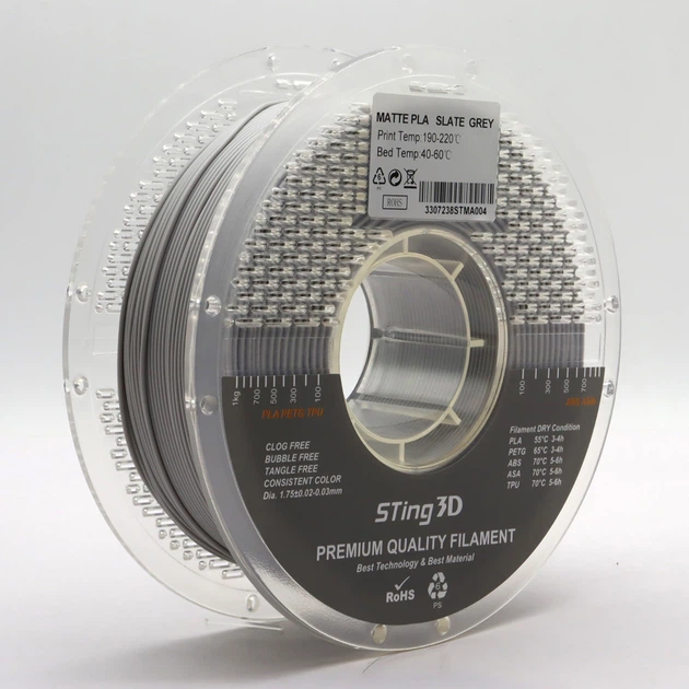 PLA Filament (пластик) для 3D принтера STing3D Matte 1кг, 1.75мм, Сірий сланець