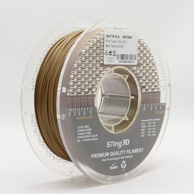 PLA Filament (пластик) для 3D принтера STing3D Matte 1кг, 1.75мм, Коричневий