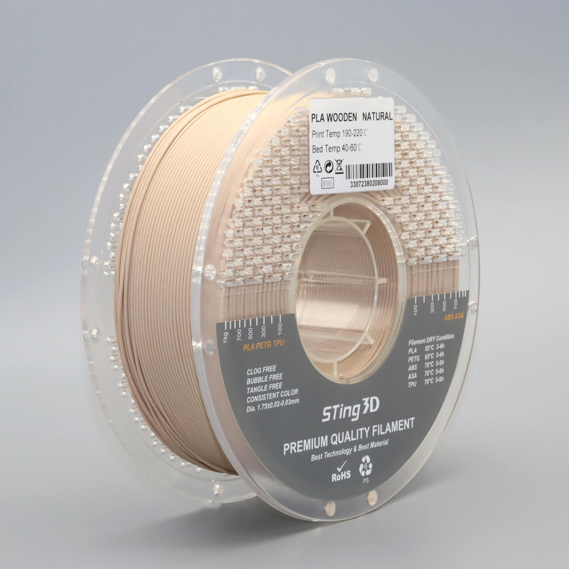 Відкрийте новий рівень творчості з PLA філаментом STing3D Wooden натурального відтінку. Цей високоякісний пластиковий матеріал з 30% деревної стружки ідеально підходить для 3D друку дерев’яних моделей із натуральною текстурою та приємним ароматом. Більше не потрібно шукати, де купити PLA філамент wooden зі справжнім ефектом дерева — STing3D Wooden дарує можливість створювати детальні, міцні та