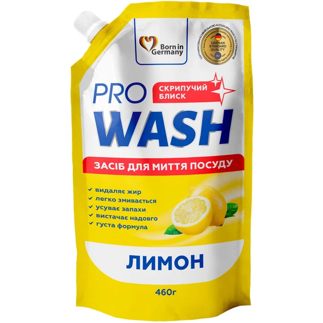 Засіб для ручного миття посуду Pro Wash Лимон дой-пак 460 г (4260637723888)