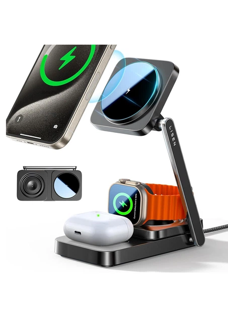 Бездротова зарядна станція 3 в 1 · Магнітна тримач-підставка 15 Вт · Зарядний пристрій для телефону, годинника та навушників