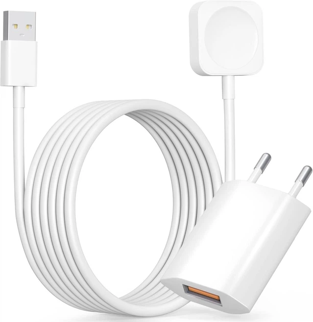 Бездротовий зарядний Apple Watch 1 м USB-A + адаптер 5 Вт, iWatch 10-5/SE/Ultra