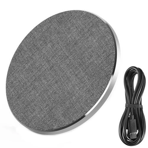Ультратонка бездротова зарядка Qi 10Вт, тканинний корпус, сірий, 9.9 х 0.7 см