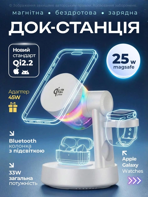 Бездротова настільна зарядка Qi2 25W магнітна док станція magsafe QINETIQ Z6 33W для apple айфона 16 17 годинника навушників