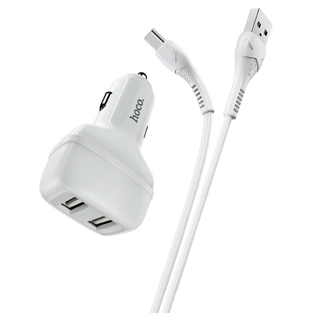 Автомобільний адаптер живлення Hoco Z36 Type-C 2-в-1, 2.4A, білий