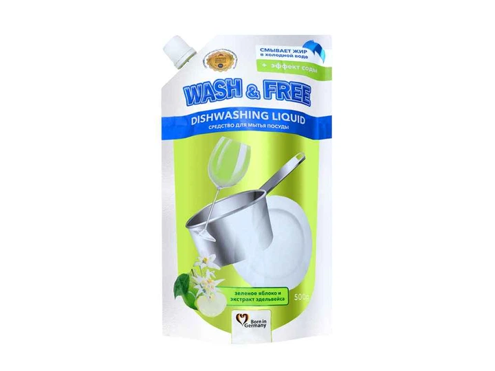 Засіб для миття посуду WASH & FREE 500мл зелене яблуко та едельвейс DOYPACK