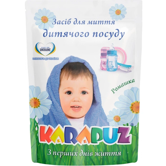 Засіб для ручного миття посуду Карапуз Ромашка дой-пак 500 мл (4820049383577)