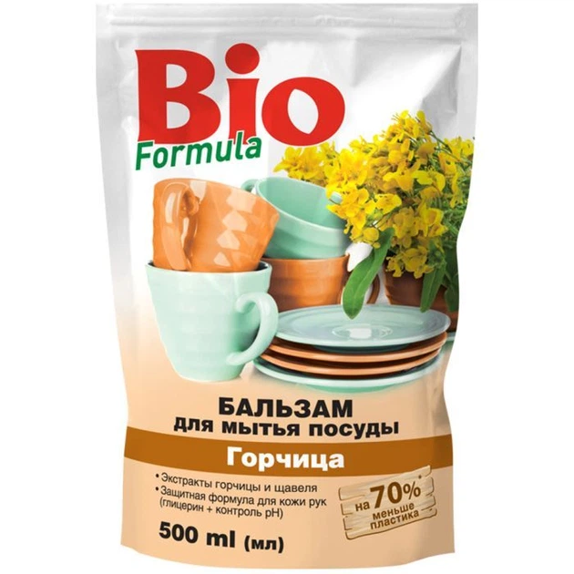 Засіб для ручного миття посуду Bio Formula Гірчиця дой-пак 500 мл (4823015922756)