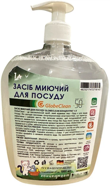 Засіб миючий для посуду GlobeClean Концентрат 1 л ( 4823217472718143)