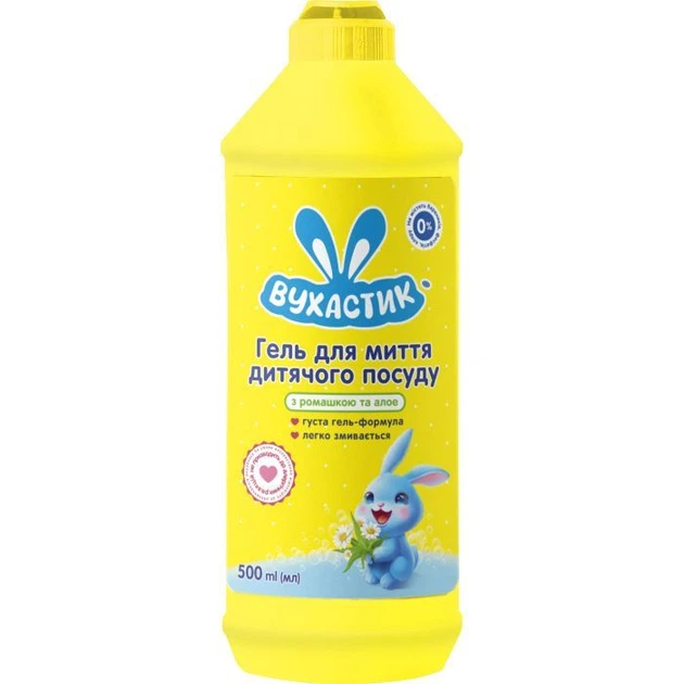 Засіб для ручного миття посуду Вухастик Для дитячого посуду З ромашкою та алое 500 мл (4820268100733)