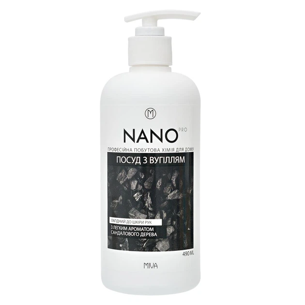 Засіб для миття посуду M MIVA Посуд з вугіллям Nano Pro 490 мл