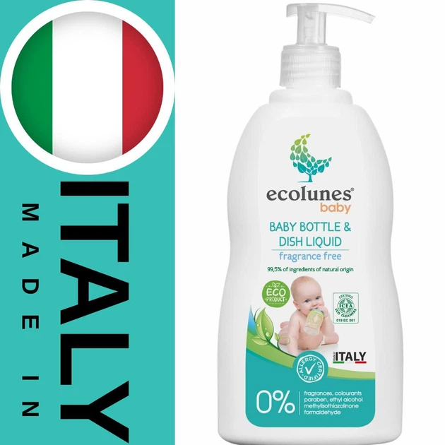 Засіб для миття дитячого посуду, пляшок, сосок Органічний Гіпоалергенний без запаху, Ecolunes 500 мл