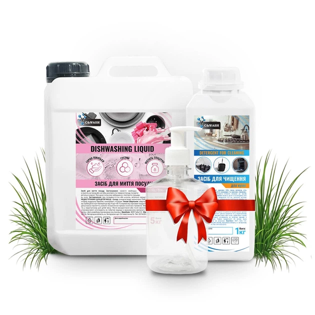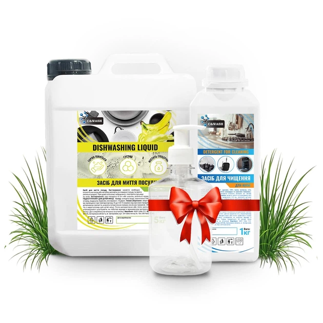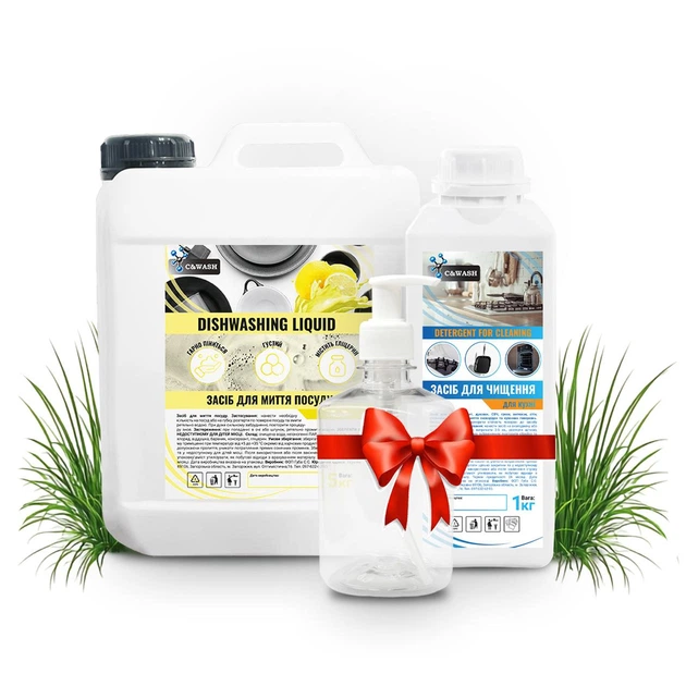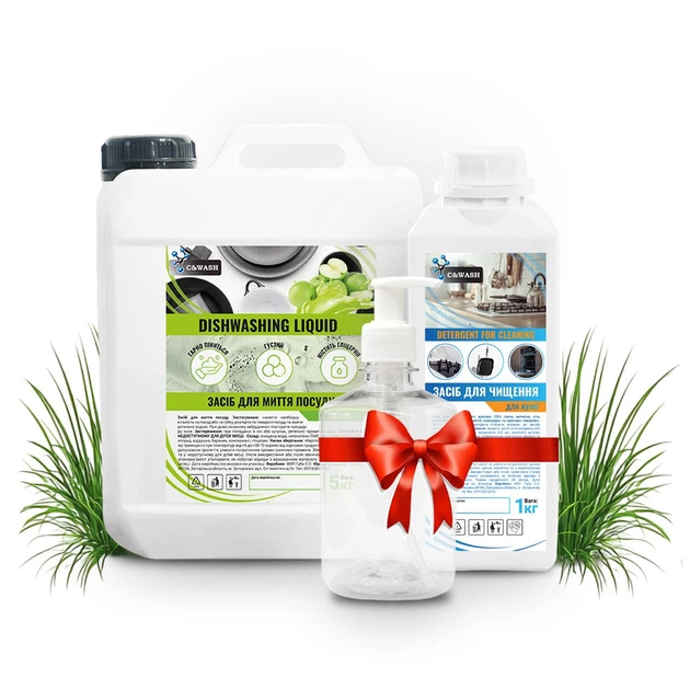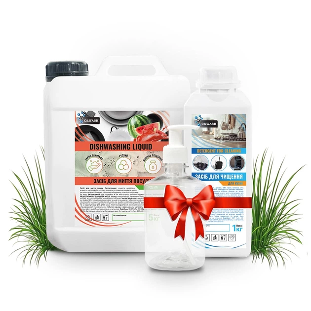 Набір засобів для миття посуду КАВУН 5 кг C&WASH + Антижир 1 кг + флакон