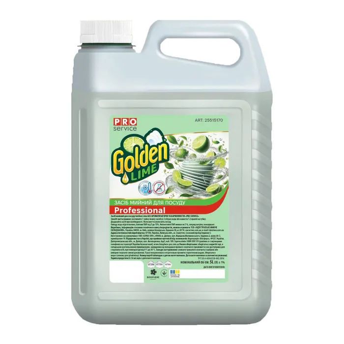 Засіб для ручного миття посуду PRO service Golden Lime Без ароматизаторів та барвників 5 л (4823071665062) 4823071665062