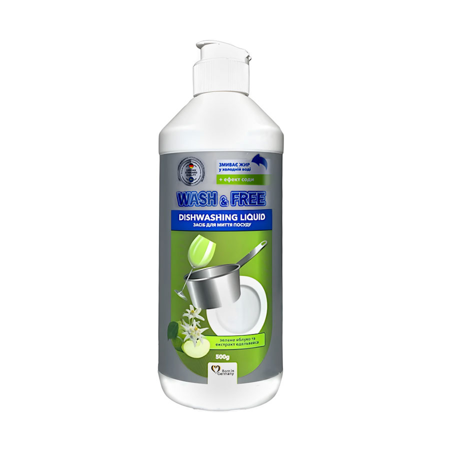Засіб для миття посуду Wash&Free зелене яблуко і екстракт едельвейса, 500 г