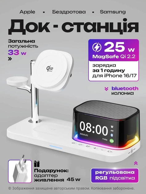 Док станція magsafe Qi2.2 25W магнітна бездротова зарядка для apple айфона 16 17 годинників навушників 3 в 1 зарядка на айфо