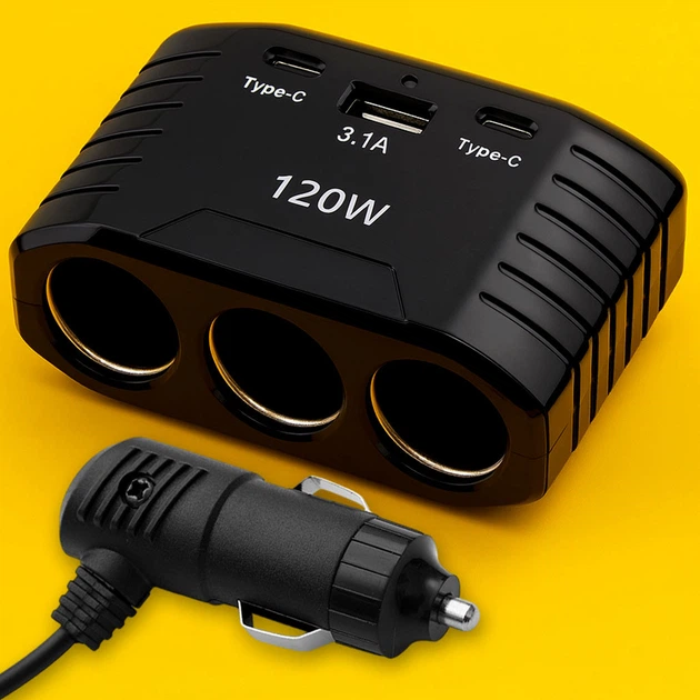 Автомобільний розгалужувач прикурювача 120W з USB та 2 Type-C CTC-604 для заряджання пристроїв в авто