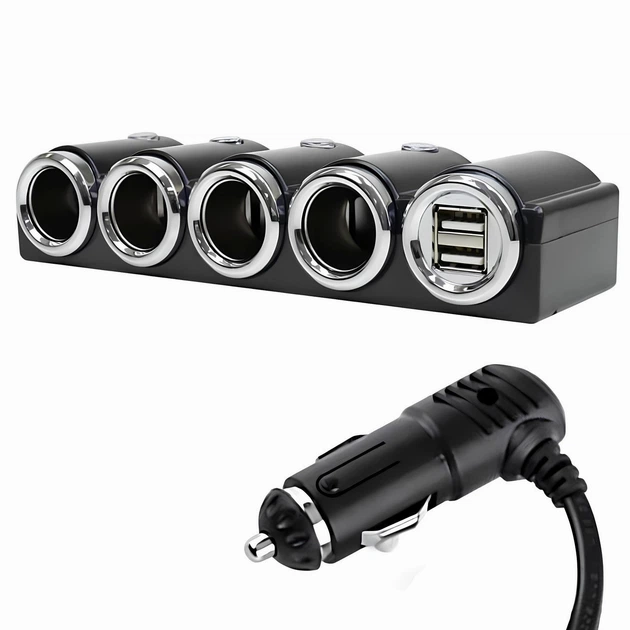Розгалужувач прикурювача 12-24В з подовжувачем 2 гнізда з автомобільним зарядним пристроєм для телефону і планшета USB і Typ