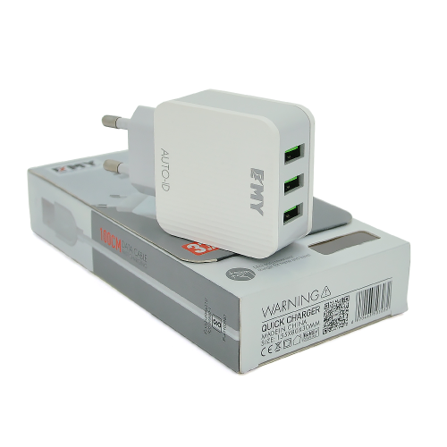 Мережевий зарядний пристрій Emy MY-A303 3xUSB 5V 3.1A 15W кабель Lightning White Blister-box Q25