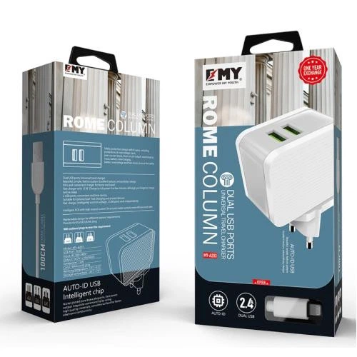 Мережевий зарядний пристрій Emy MY-A203 2xUSB 5V 2.4A 12W кабель Lightning White Blister-box