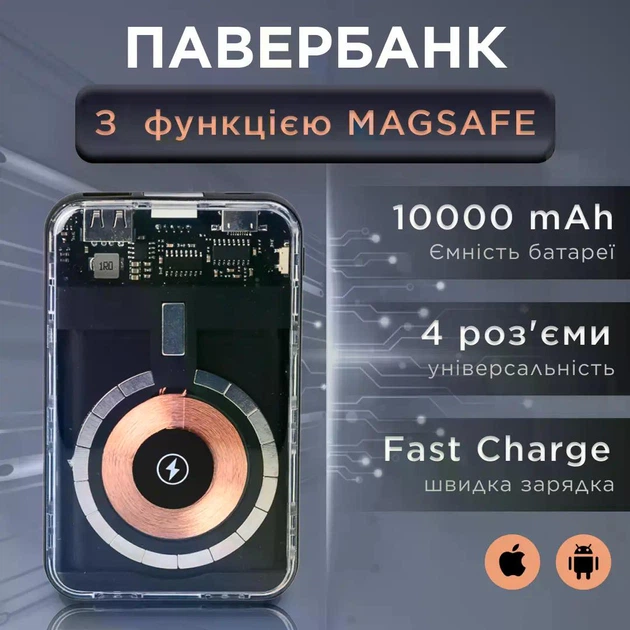 УМБ повербанк Hoco 10000mAh зовнішній акумулятор портативний зарядний пристрій PowerBank магнітна бездротова зарядка смартфо