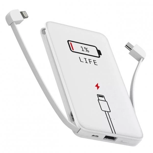 Повербанк 10000 мАч з бездротовою зарядкою та трьома кабелями USB-C Lightning USB чорний