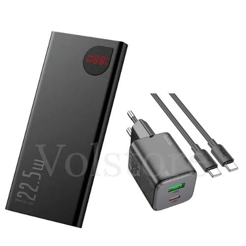 Комплект Павербанк Hoco 10000 mAh 22.5W/20W 3A та Мережевий Адаптер Borofone BAS55A Type-C to Type-C Павербанк із швидкою за