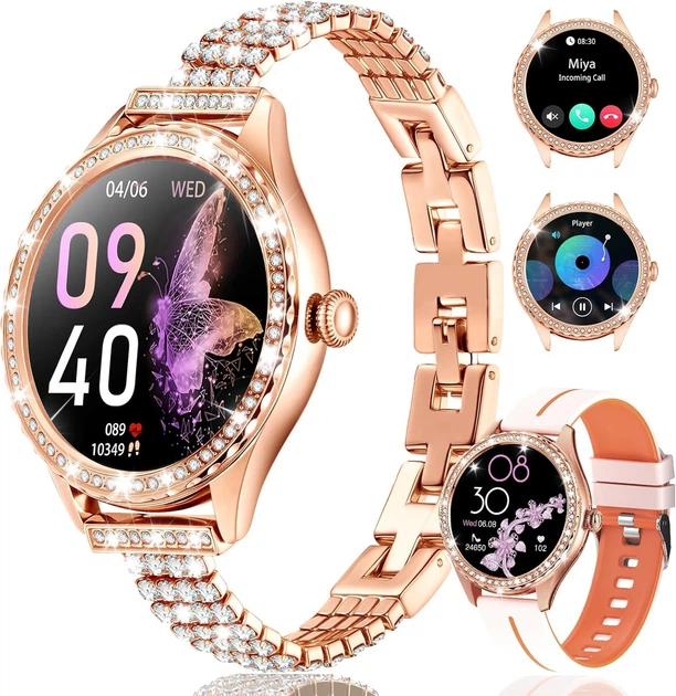 Смарт-годинник з камінням Luxury Crystal, моніторингом пульсу та сну, українською мовою та двома ремінцями