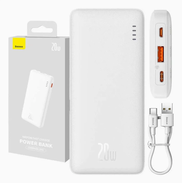 Повербанк Baseus 20000 мАг із швидкою зарядкою 20W PD QC для смартфонів та ноутбуків потужний акумулятор для подорожей